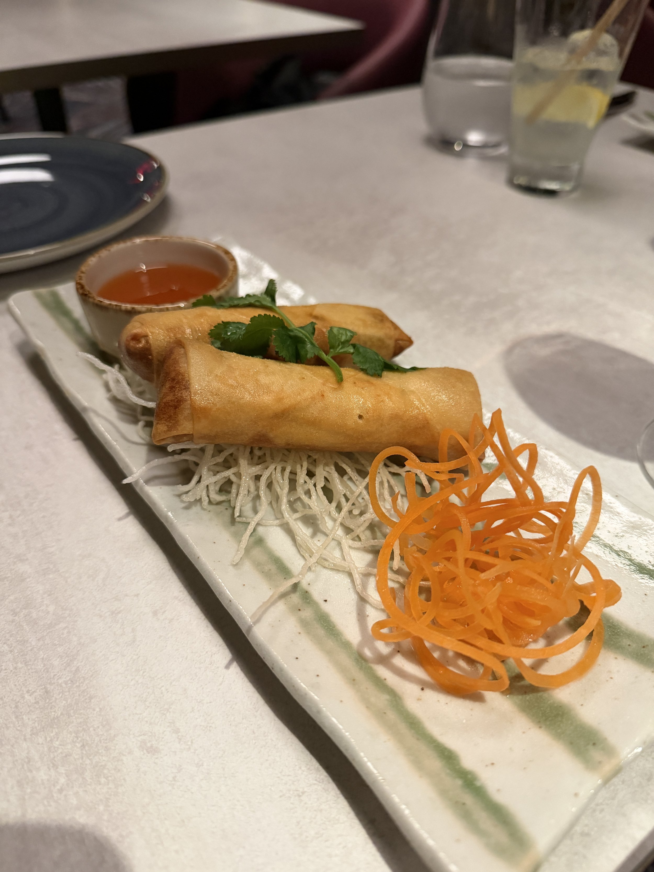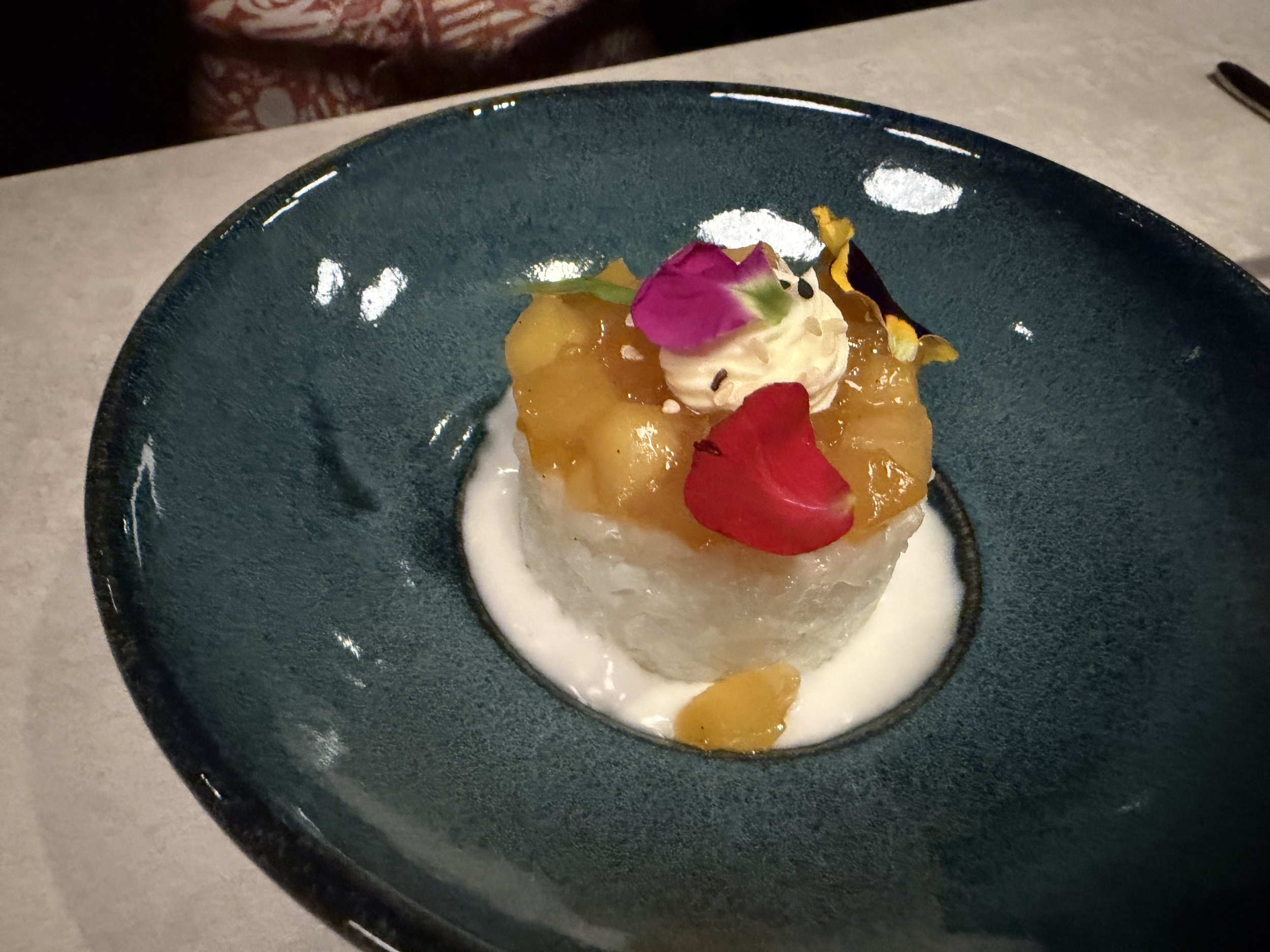 Sukhothai operates as a specialty dining restaurant and requires an additional fee. The current price is $50 per person and includes up to three appetizers, one entrée from either the curry or house specialties section, and three desserts. Guests may use a specialty dining package credit or pay the cover charge. This pricing structure allows guests to sample multiple menu items while enjoying a more private dining setting and attentive service.