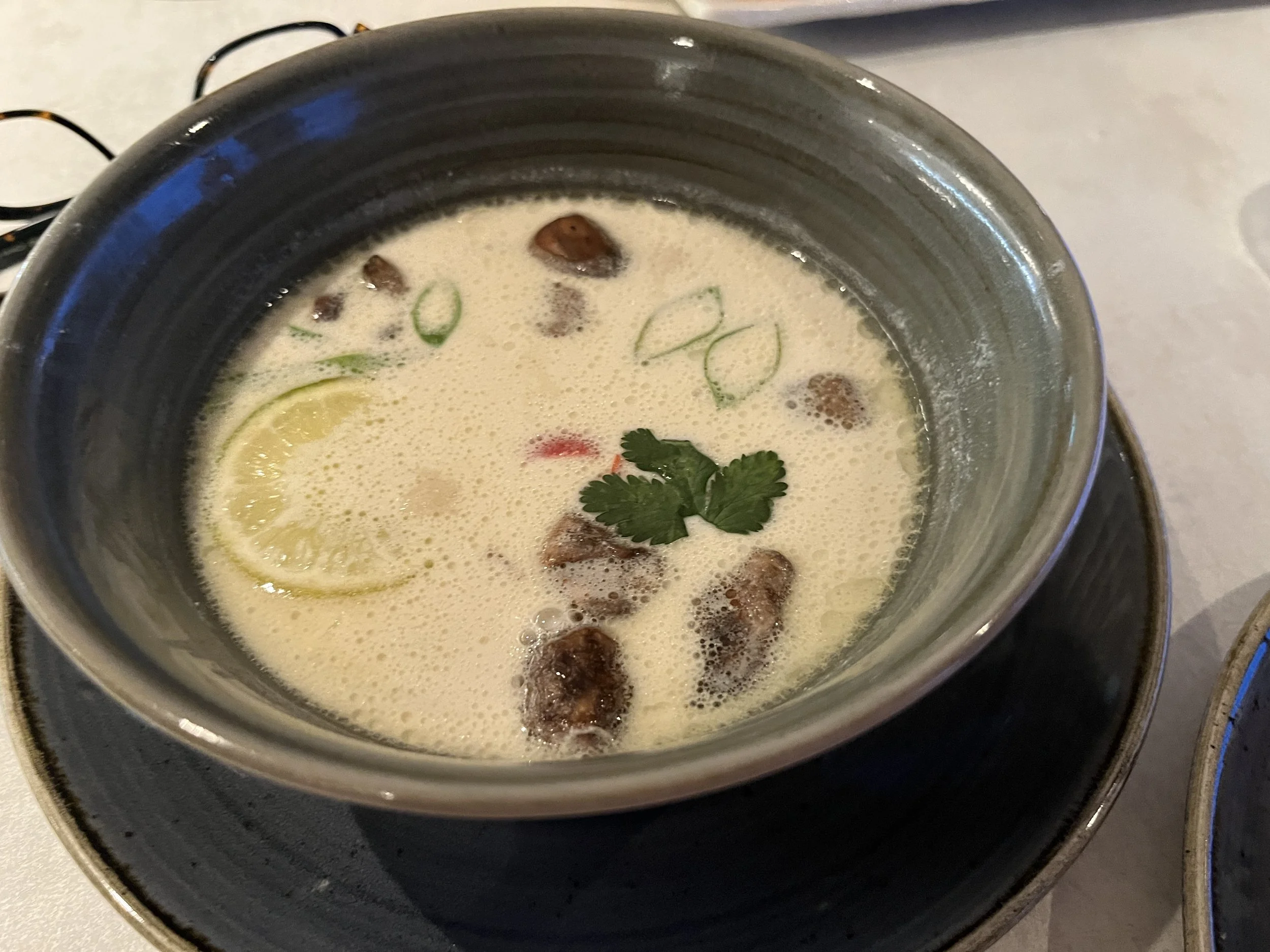 The Sukhothai menu includes a variety of appetizers, main courses, and desserts that appeal to a wide range of tastes. Starters include Salt and Pepper Prawns, Chicken Satay served with peanut sauce, and Thai Spring Rolls. Guests looking for a traditional soup option can choose Tom Kha Gai, a coconut based soup with chicken, mushrooms, and aromatic herbs.
