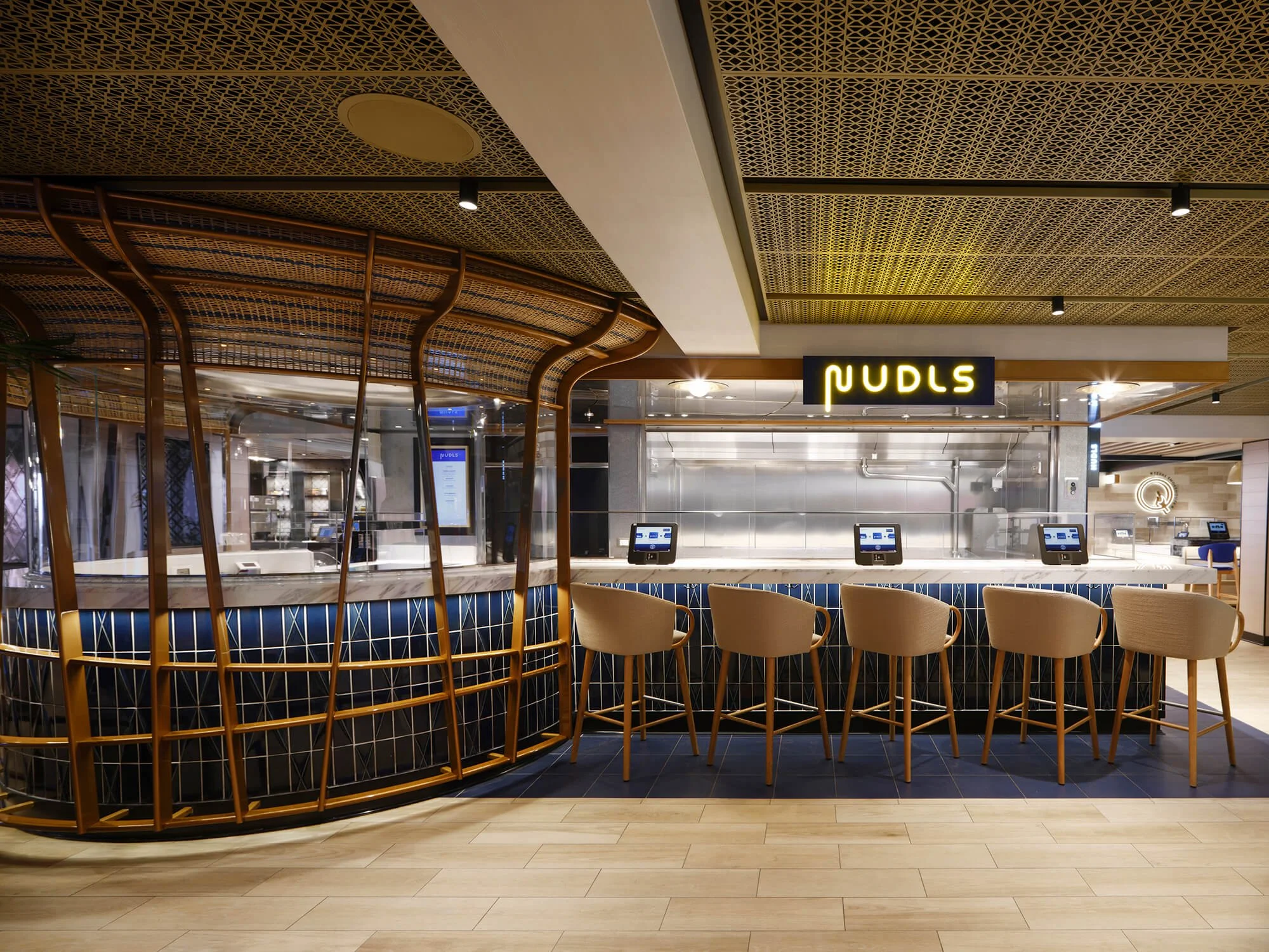 Nudls is a must-visit for noodle lovers, offering a global selection of noodle dishes for lunch and dinner. Guests can choose from options like Pad Thai with shrimp, Singapore Street Noodles packed with vegetables and spices, and Lanzhou-style Chinese beef noodle soup made with tender beef and flavorful broth. Italian options such as Pesto Gnocchi provide a comforting alternative for those who prefer pasta over Asian-style noodles.
